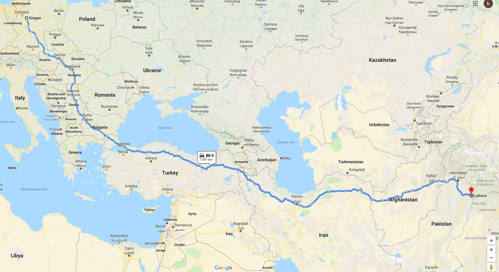 Most of March was spent planning for the trip. 3 out of the 4 weeks in March were so packed with work for me that I rarely had the time but we got done what we could. Planning the route that’d take across multiple borders has never been easier in this age of digital navigation and internet search engines where you can pretty much go through it all as a simulation without actually starting your car engine. Giving Lahore as the destination for the journey, Google suggests going through Afghanistan. You’d think Google, being Google, would know better than to suggest this route but it is the shortest possible road that we could take.