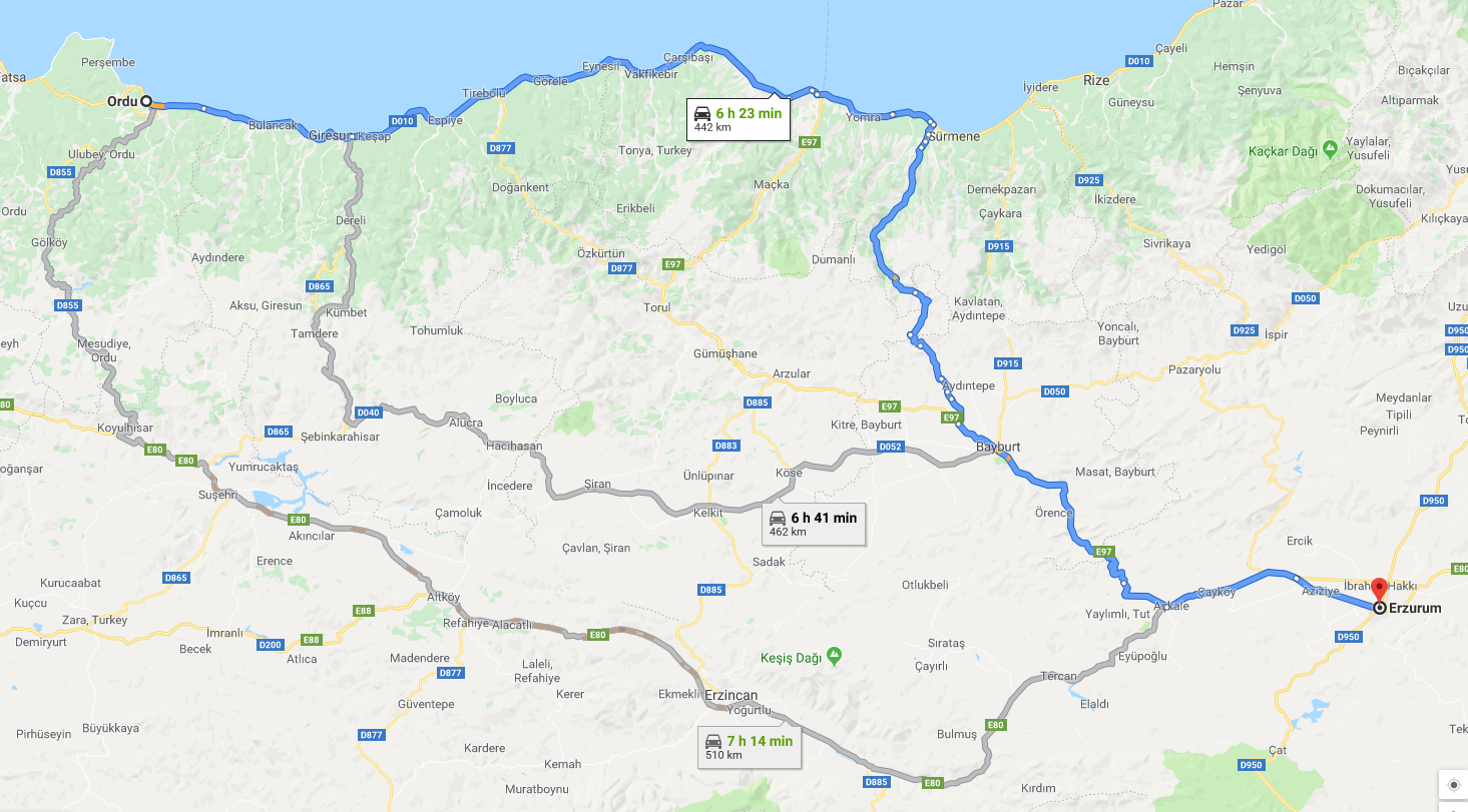 On the other hand, the road signs and GoogleMaps (who we frequently consulted to make sure we didnt run into unexpected hurdles) were suggesting we drive on to Arakli and then take a road South to Askale, via Bayburt. Now, I must admit I hadn’t done much research (exploring the route on googlemaps) including this area so we were just playing along, as long as we could progress towards our next major goal: the border.