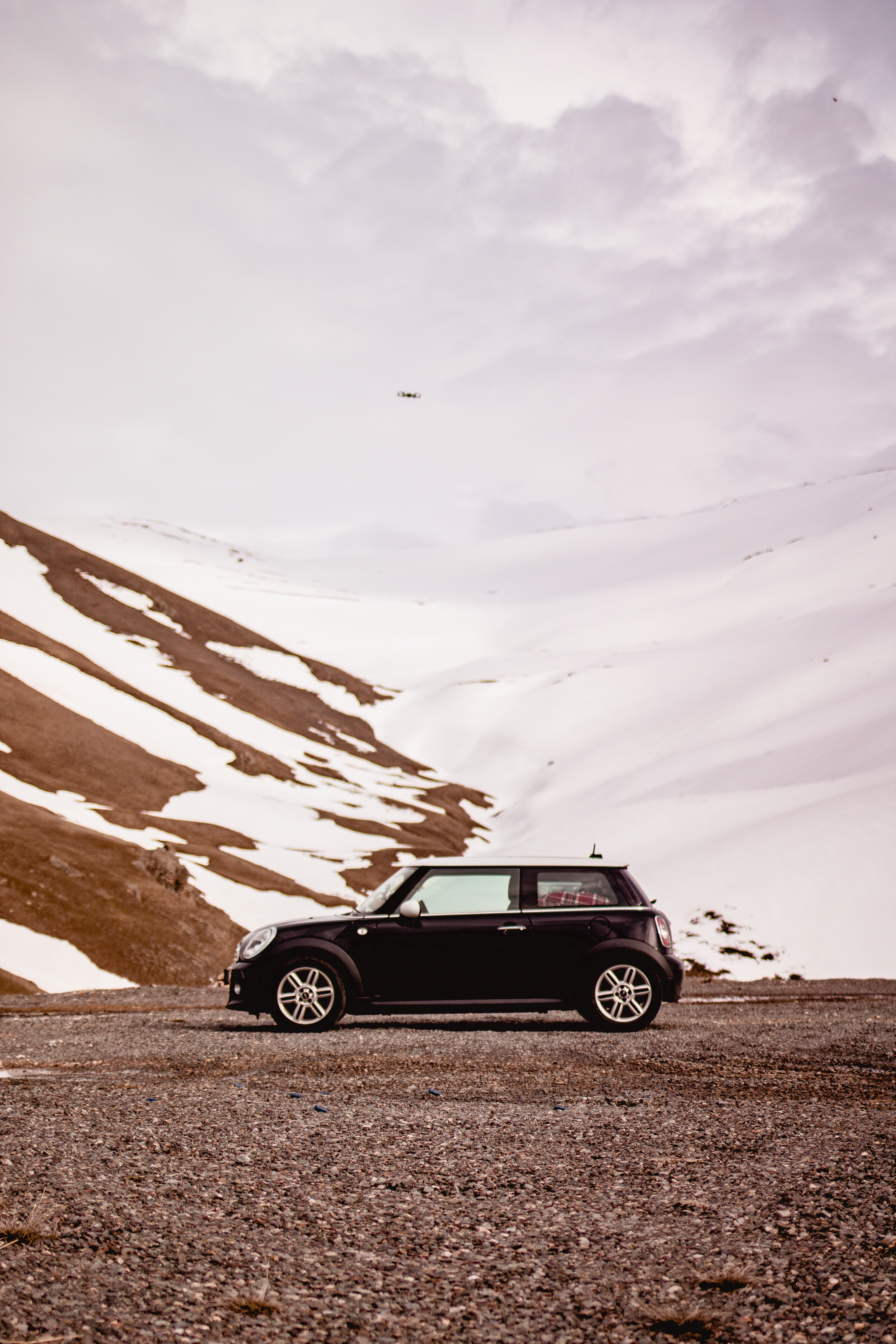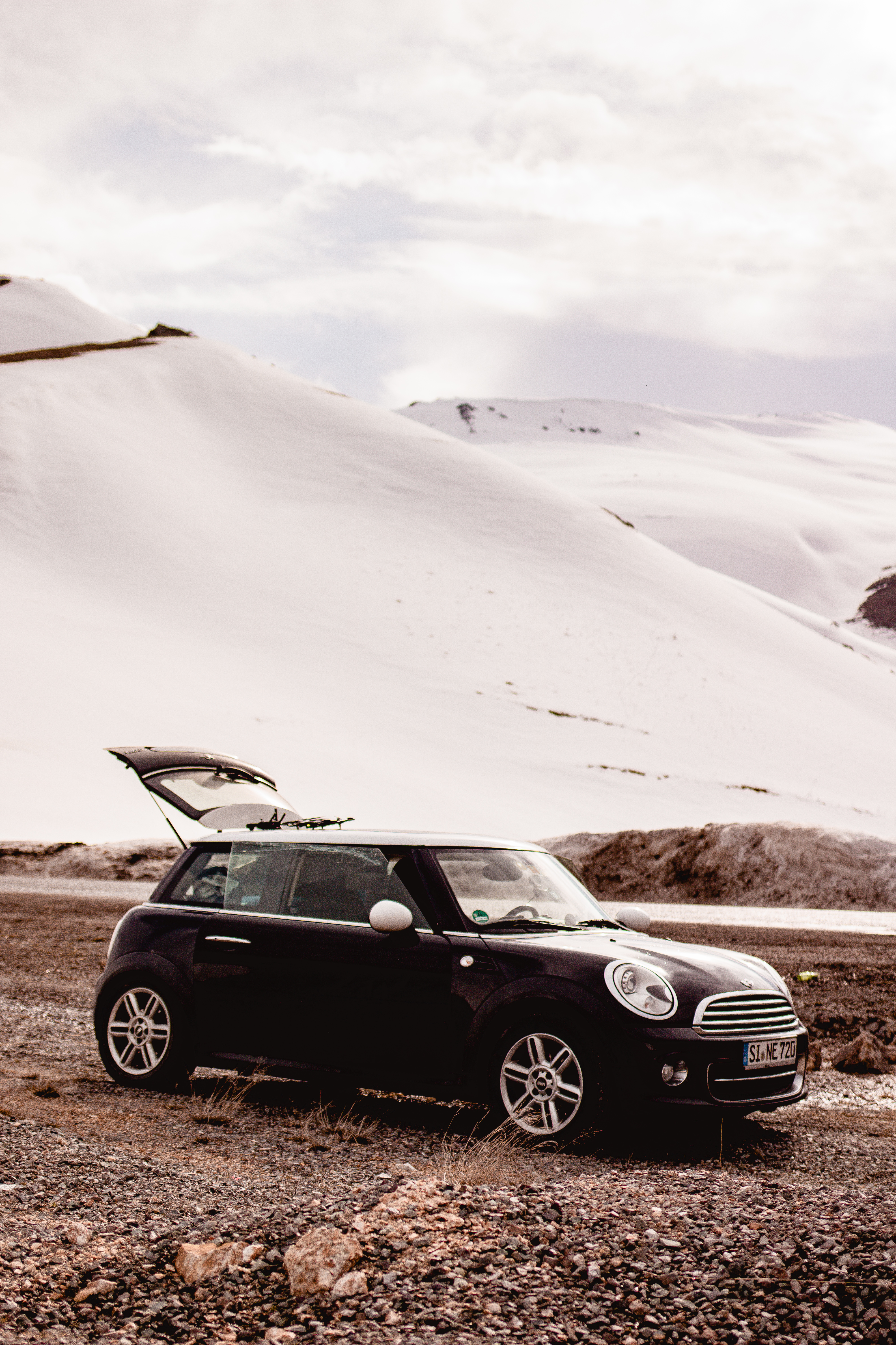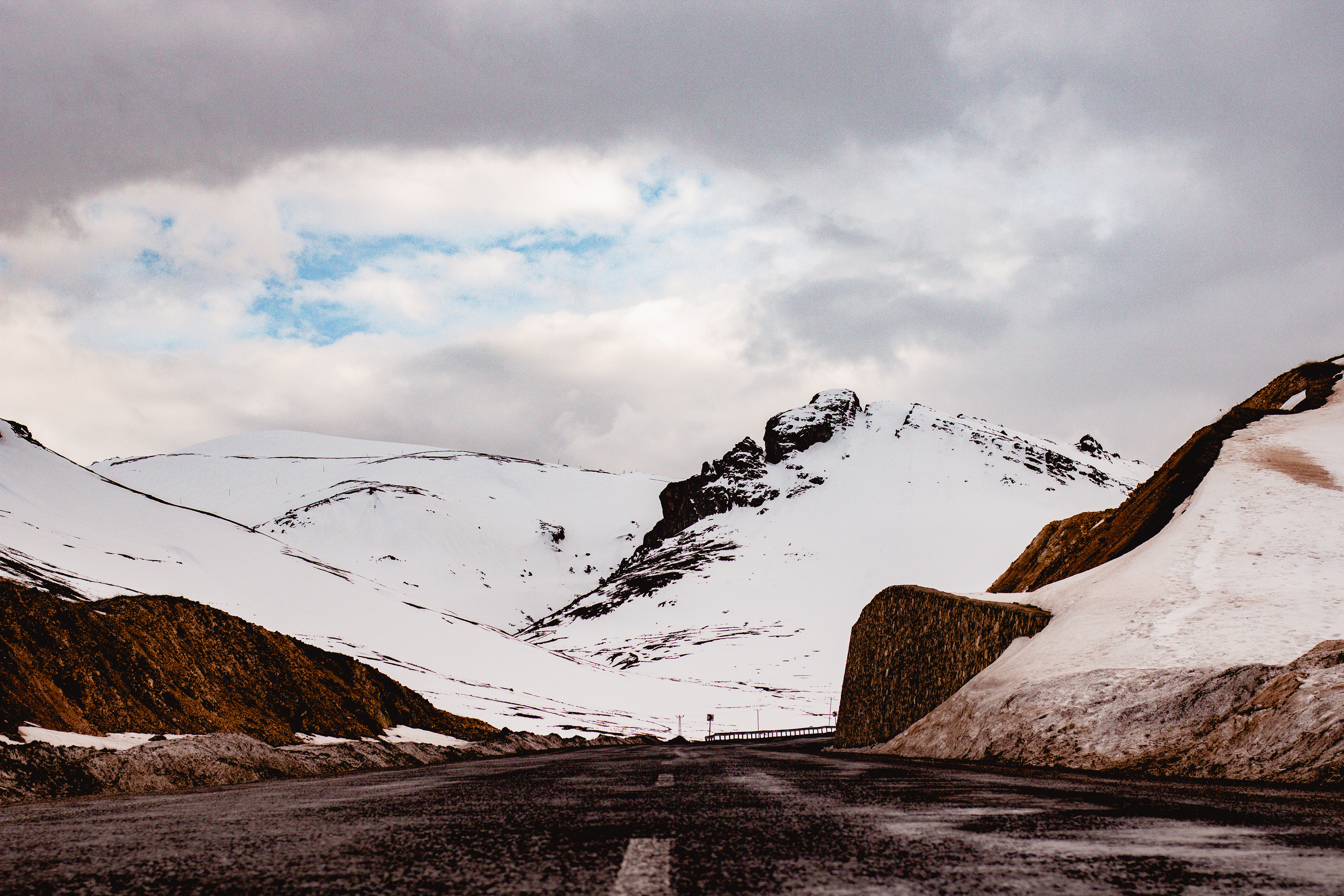 Not fresh snow, thankfully, as were running on summer tyres but there was still snow lying on the side of the road and we were still climbing higher into the mountains.