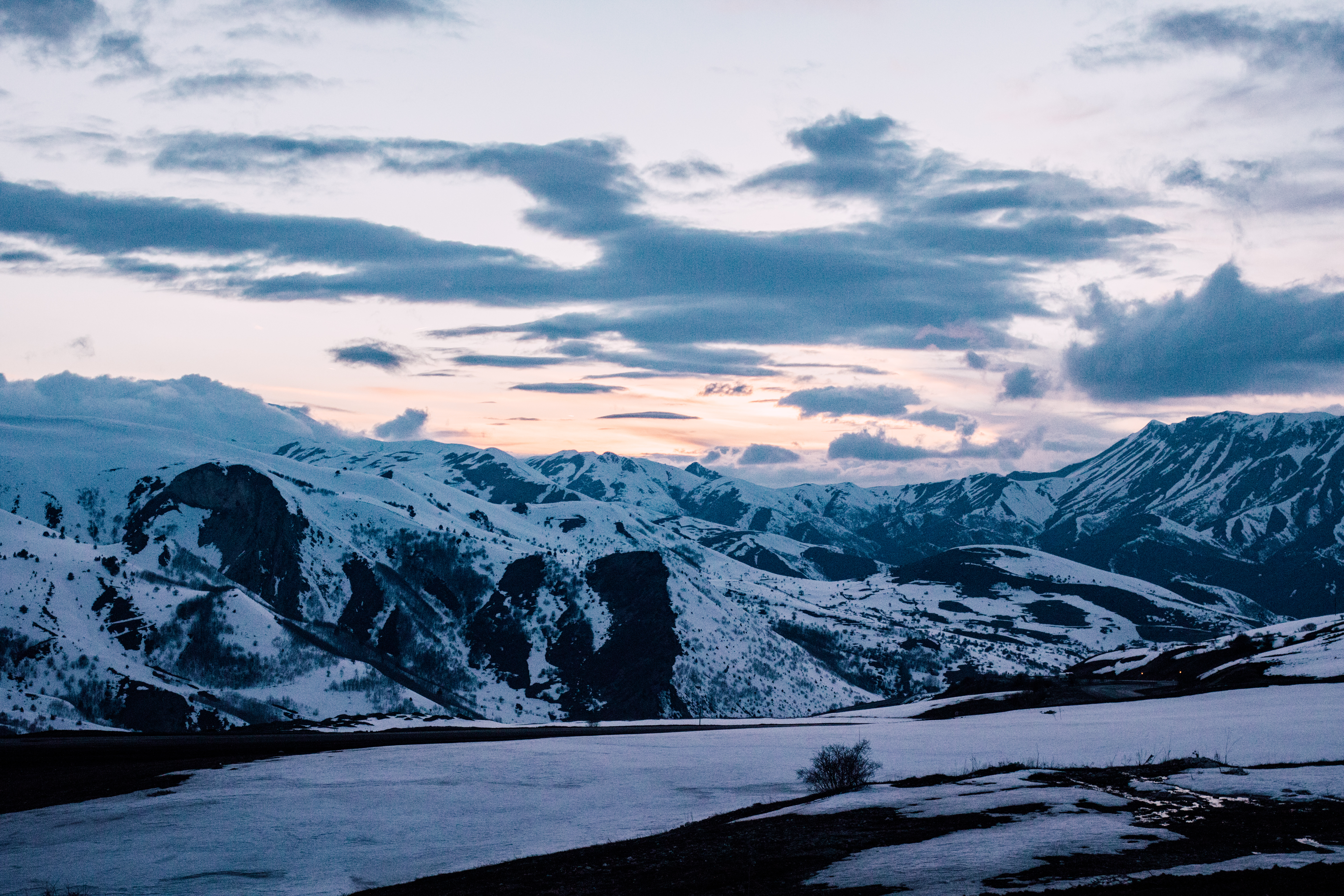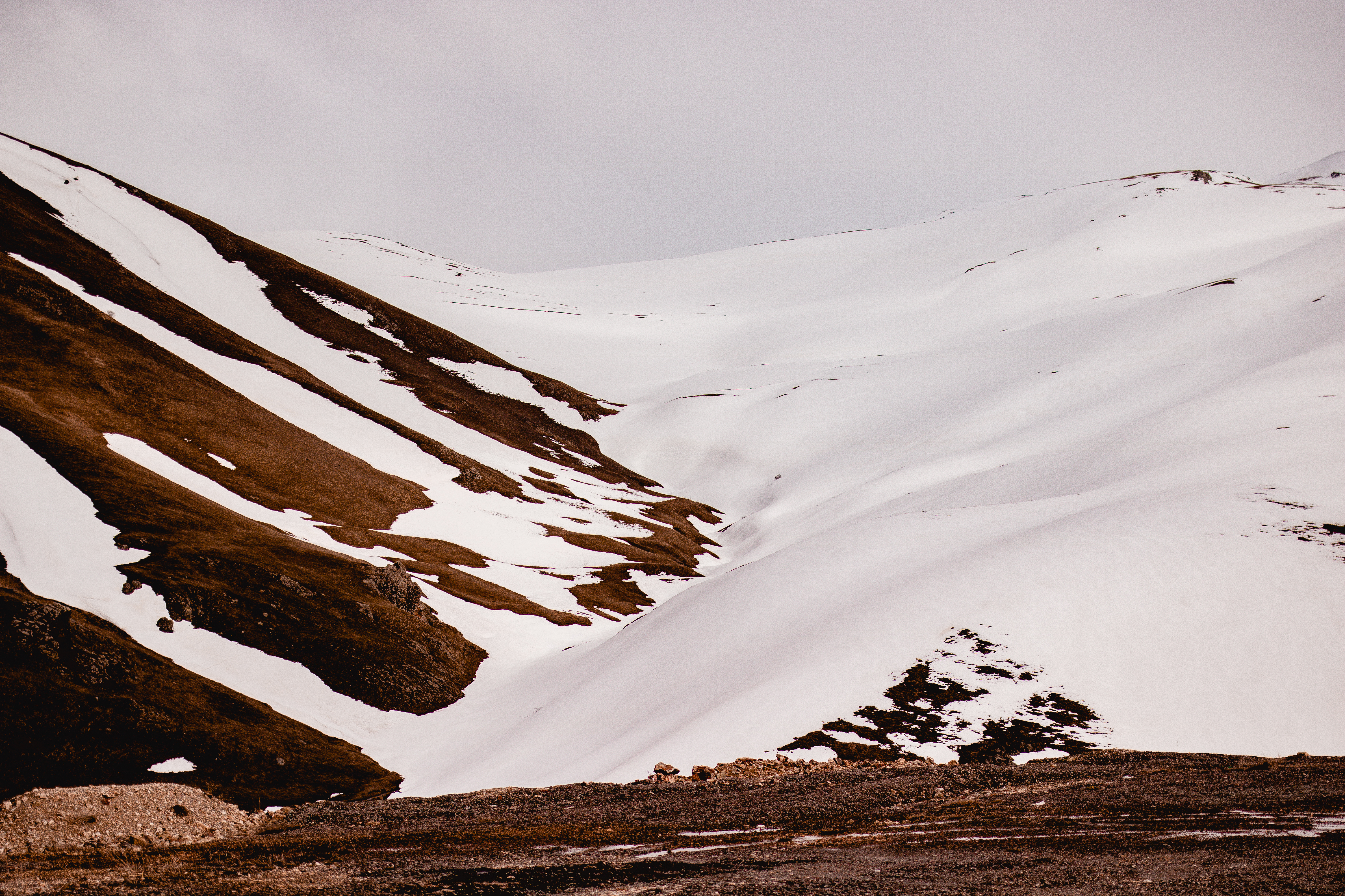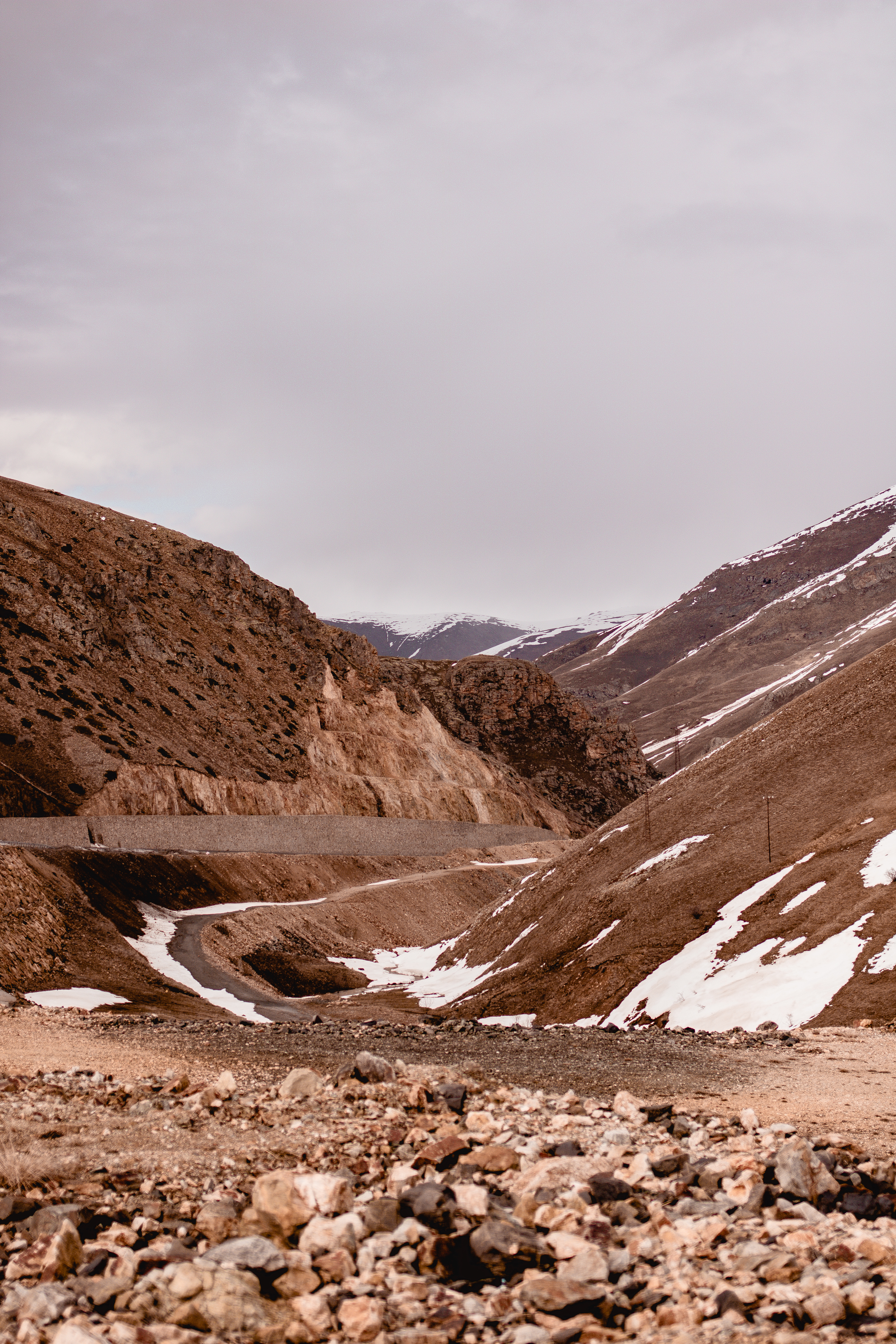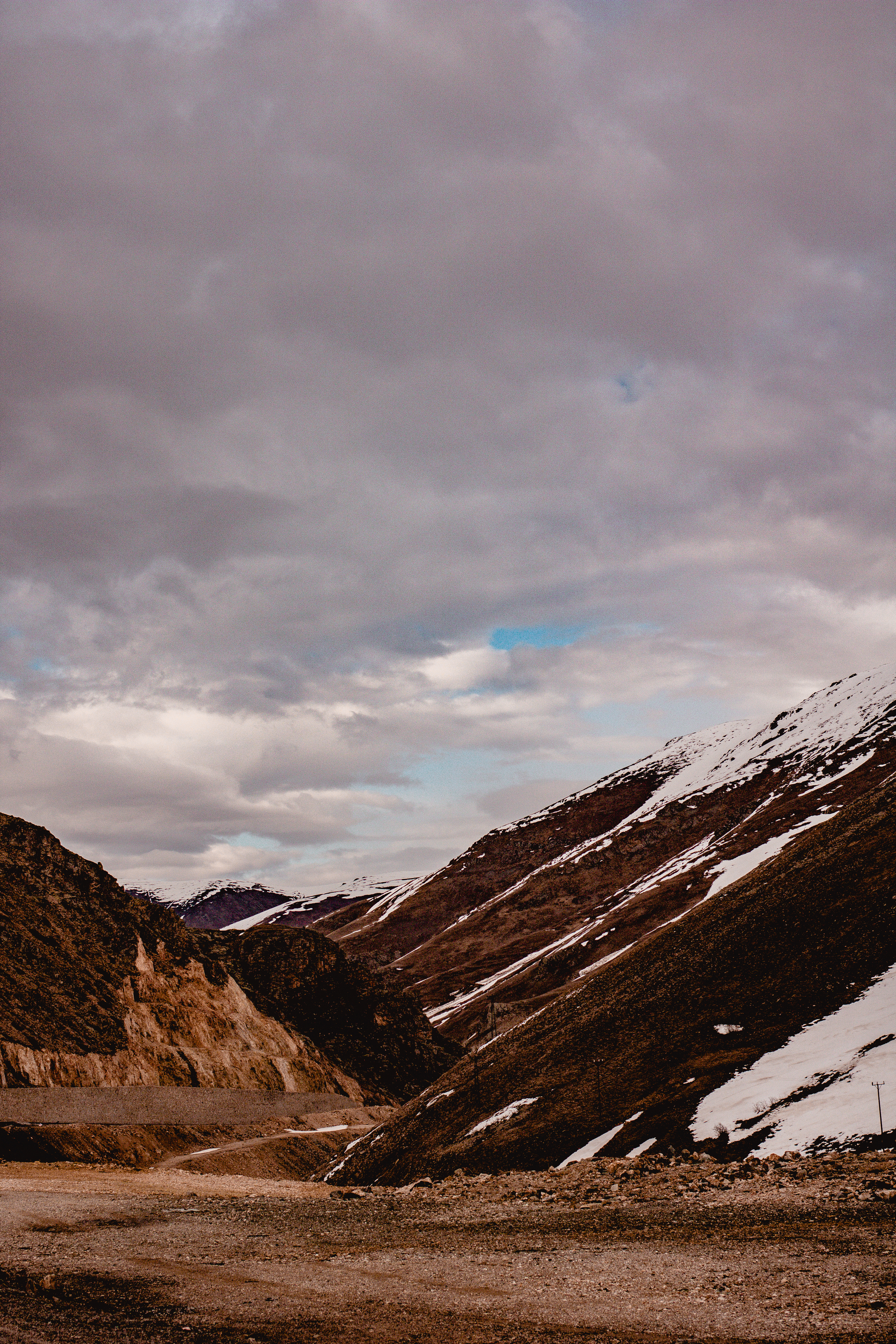 Not fresh snow, thankfully, as were running on summer tyres but there was still snow lying on the side of the road and we were still climbing higher into the mountains.