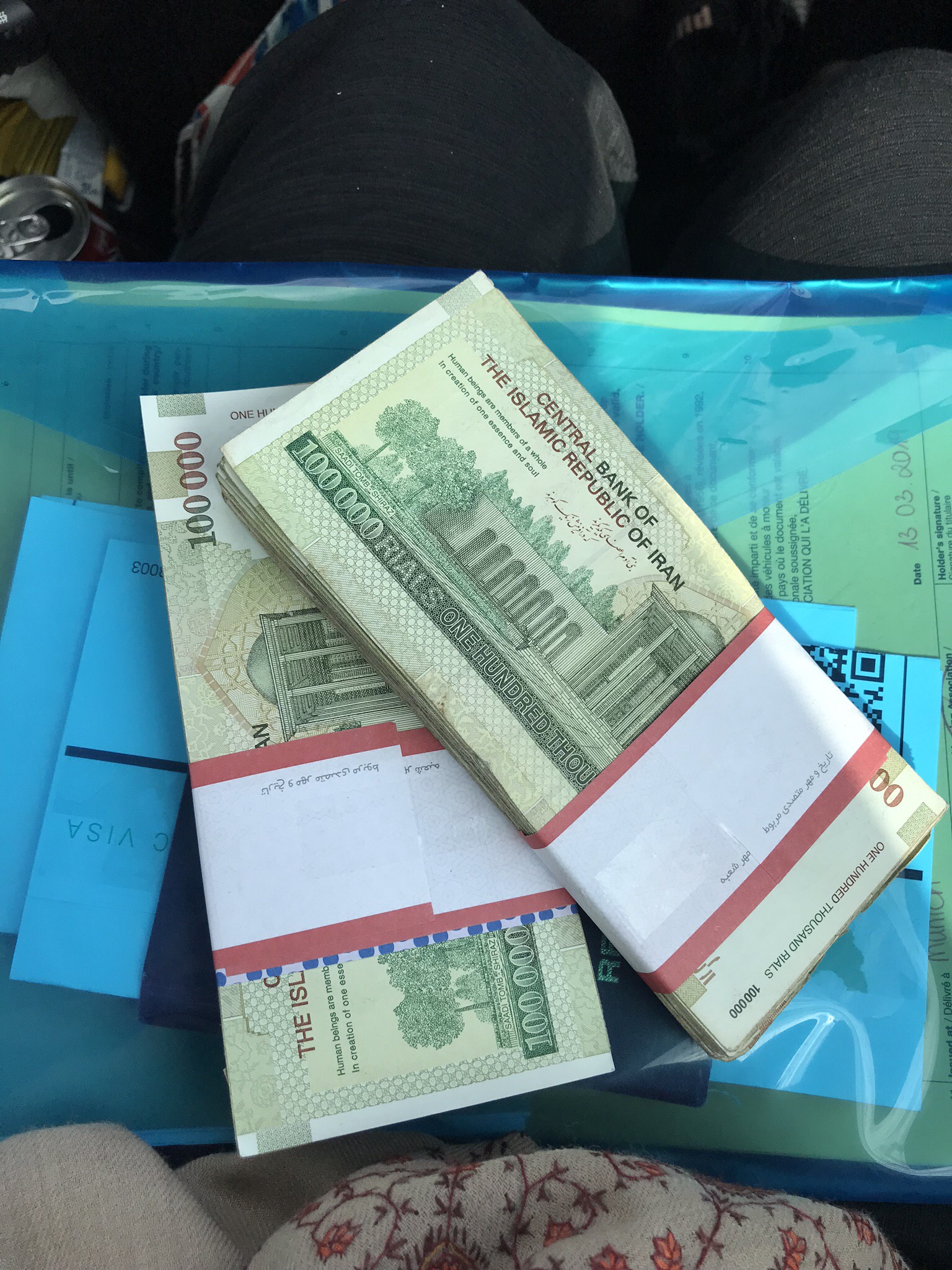 Avoiding all the people standing around with fat bundles of cash all along the street, we went to an official exchange place. In lieu of a copy of my passport and €150, I was handed over 24,000,000 Iranian Riyals.