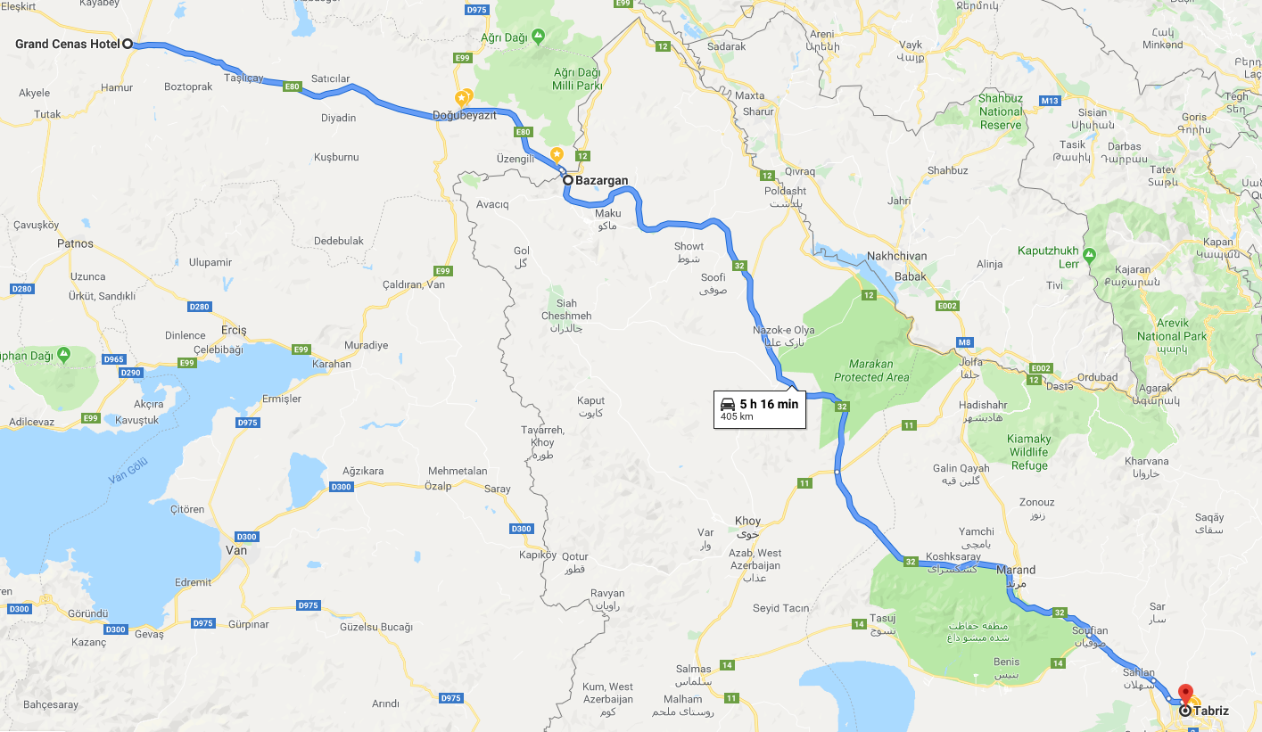 Google and other hotel search portals are not a lot of help (again, due to sanctions) but thankfully, I still had the contact details of colleagues based in Iran from my work trip. On their tip, we had the address of a hotel in Tabriz. This was good enough for us to plan our route and get going.