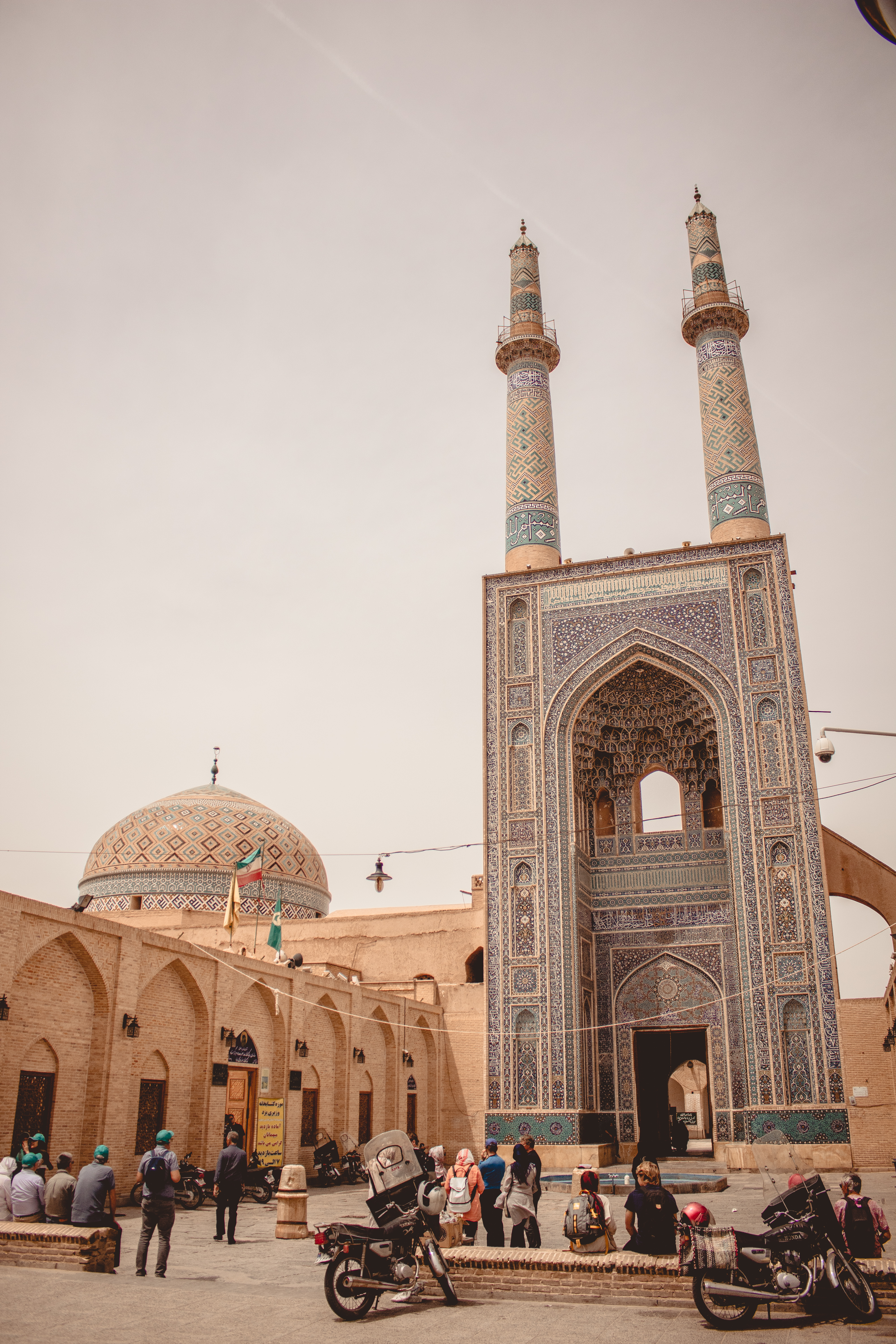 Like the Jameh Masjid (Grand Mosque) of Yazd. This mosque, built first in the 12th century and later expanded in the early 14th, is one of the finest examples of Persian (Azeri) architecture that you’ll ever see. Highest minarets in Iran too. As was typical for the time, the mosque was placed at the heart of all urban centres, with bazaar, schools, government offices all built around it. This being smack in the middle of the desert, it helps that a Qanat (underground canal) runs right at this location, providing fresh water, not only for the mosque but for the whole complex.